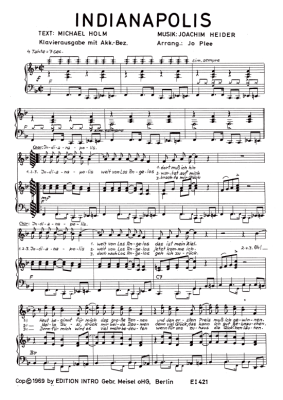 Indianapolis - Noten für Klavier und Gesang Howard Carpendale
