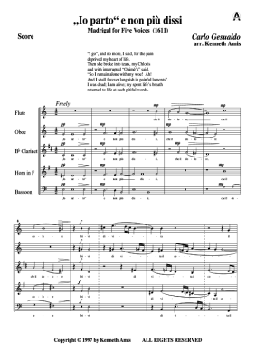 Io parto e non piu dissi - Noten fĂŒr HolzblĂ€serquintett Carlo Gesualdo (Madrigale 1611)