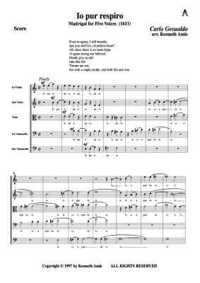 Io pur respiro - Noten für Streichquintett Carlo Gesualdo (Madrigale 1611)