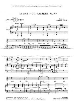 Is she not Passing Fair? - Noten für Gesang, Klavier Edward Elgar