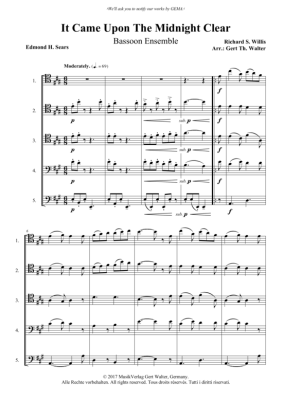 It Came Upon The Midnight Clear - Noten für Fagott Quintett Richard S. Willis