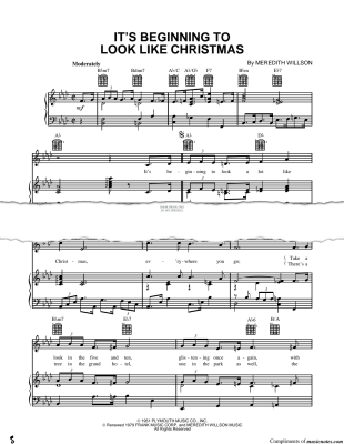 It's Beginning To Look Like Christmas - Noten für Gesang, Gitarre, Klavier Meredith Willson