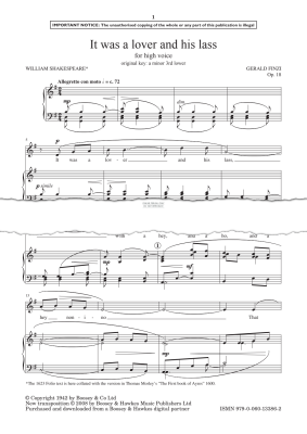It Was A Lover And His Lass - Noten für Gesang, Klavier Gerald Finzi