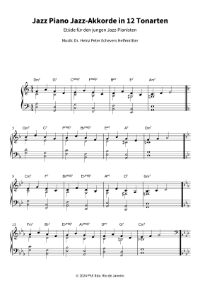 "Jazz Piano Jazz-Akkorde in 12 Tonarten" von Dr. Heinz Peter Echevers Helfenritter - die ideale Etüde für den jungen Jazz-Pianisten. Dieses Werk wurde speziell entwickelt, um die pianistischen Fähigkeiten zu erweitern und zu verfeinern. Im Mittelpunkt steht ein kurzes musikalisches Thema, das in verschiedenen Tonarten und Sequenzen wiederholt wird. Die Etüde ermöglicht einen einfachen Einstieg in die Welt des Jazz und konzentriert sich auf die wesentlichen Aspekte des Jazzpianospiels. Die Etüde ist harmonisch strukturiert und bietet die Möglichkeit, zwischen verschiedenen Tonarten zu wechseln, was sie auch zu einer hervorragenden Vorlage für spätere Improvisationen macht. Tauche ein in die Welt des Jazz und meistere die Kunst der Jazzakkorde in allen 12 Tonarten. Diese Notenausgabe ist ein unverzichtbares Werkzeug für jeden angehenden Jazz-Pianisten, der seine Fähigkeiten auf die nächste Stufe bringen möchte.
