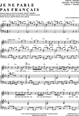 Je Ne Parle Pas Francais - Noten für Gesang mit Klavierbegleitung Namika