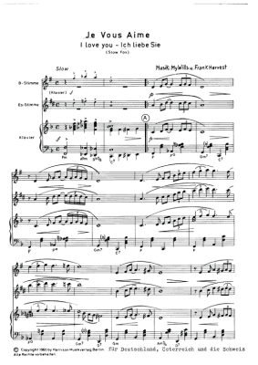 Je vous Aime, I Love You - Noten für Trio: Klavier und 2 Melodieinstrumente B/Es Slowfox