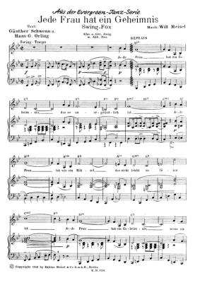 Jede Frau hat ein Geheimnis - Noten für Klavier und Gesang Swing Fox