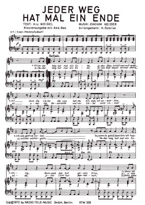 Jeder Weg hat mal ein Ende - Noten für Klavier und Gesang Marianne Rosenberg