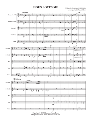 Jesus Loves Me - Noten fĂŒr BlechblĂ€ser Quintett William D. Bradbury