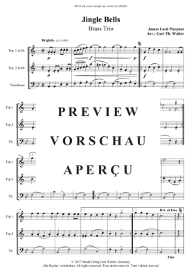 Jingle Bells - Noten für 2x Trompete in B, Posaune James Lord Pierpont
