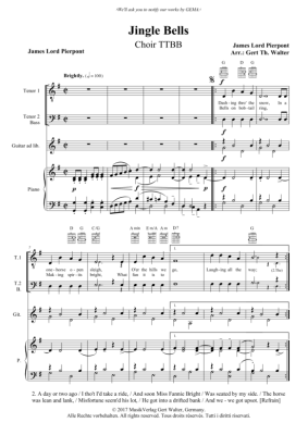 Jingle Bells - Noten für Männerchor TB + Klavier James Lord Pierpont