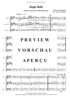 Jingle Bells - Noten für Oboe, Klarinette, Fagott James Lord Pierpont