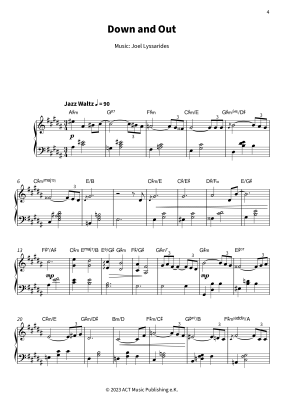 Joel Lyssarides´ Piano Book is a masterful collection of six contemporary piano compositions by the acclaimed Swedish jazz pianist. This sheet music book blends lyrical jazz, minimalist textures, and deep emotion, ideal for advanced pianists seeking a rewarding dive into modern jazz for solo or recital settings. It includes "Down and Out," a melancholic piece with intricate harmonies evoking longing, "Is There a Way," introspective with delicate melodies, "The Last Verse," poetic with heartfelt intensity, "As Night Let Down Its Curtain," capturing night´s stillness with arpeggios, "Echoes," vibrant with complex rhythms and improvisation, and "Stay Now," moving with emotional simplicity. It´s perfect for musicians honing their skills in contemporary jazz. Rooted in Scandinavian jazz, Lyssarides´ works balance technical precision and emotional depth, captivating performers and listeners. Discover this evocative collection.