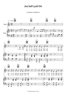 Jos Sull Lysti On - Noten für Gesang + Klavier, Gitarre traditional