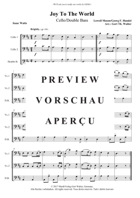 Joy To The World - Noten für 2x Violoncello, Kontrabass Lowell Mason/Georg F. Händel