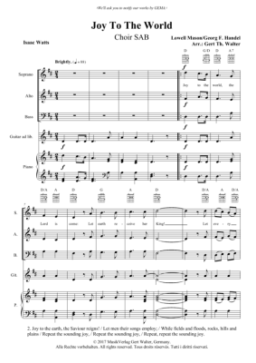 Joy To The World - Noten für Gemischter Chor SAB + Klavier Lowell Mason/Georg F. Händel