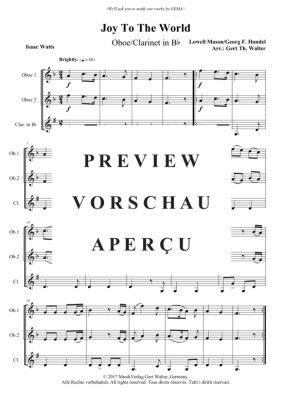 Joy To The World - Noten für Zwei Oboen und Klarinette Lowell Mason/Georg F. Händel