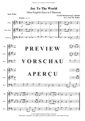 Joy To The World - Noten für Oboe, Englischhorn, Fagott Lowell Mason/Georg F. Händel