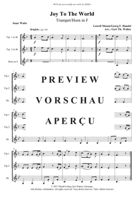 Joy To The World - Noten für 2x Trompete + Horn in F Lowell Mason/Georg F. Händel
