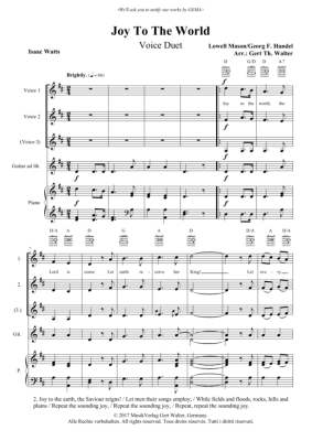 Joy To The World - Noten für Gesangs-Duett + Klavier Lowell Mason/Georg F. Händel
