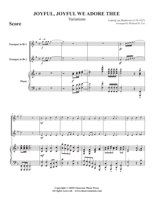 Joyful, Joyful We Adore Thee - Noten für 2x Trompete in B + Klavier Ludwig van Beethoven