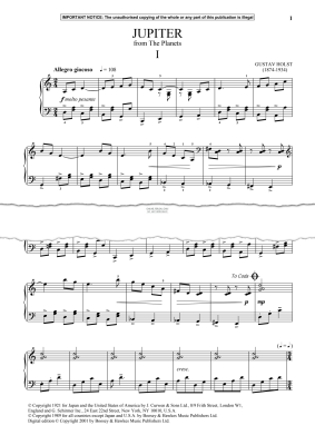 Jupiter from The Planets - Noten für Klavier Gustav Holst