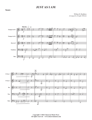 Just As I Am - Noten fĂŒr BlechblĂ€serquintett William B. Bradbury