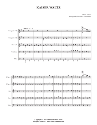 Kaiserwalzer (Kaiser Waltz) - Noten fĂŒr BlechblĂ€serquintett Johann Strauss