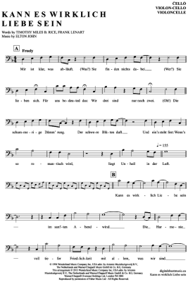 Kann es wirklich Liebe sein - Noten für Violon-Cello aus: Der König der Löwen (Musical)