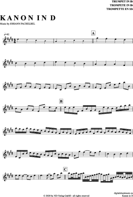 Kanon In D - Noten für Trompete in B Johann Pachelbel