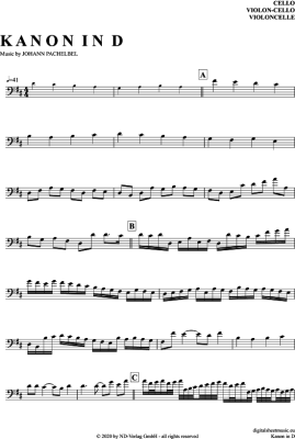 Kanon In D - Noten für Violon-Cello Johann Pachelbel