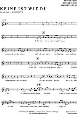 Keine Ist Wie Du - Noten für Trompete in B Gregor Meyle