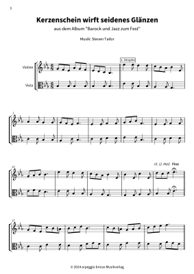 Kerzenschein wirft seidenes Glänzen - aus dem Album Barock und Jazz zum Fest - Noten für Streicher Duo Steven Tailor