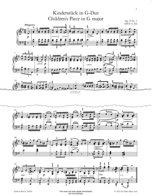 Kinderstücke in G Major Op.72, No.3 - Noten für Klavier Felix Mendelssohn