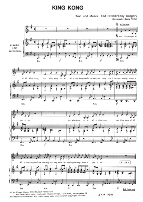 King Kong - Noten für Klavier und Gesang Big Secret (2014)