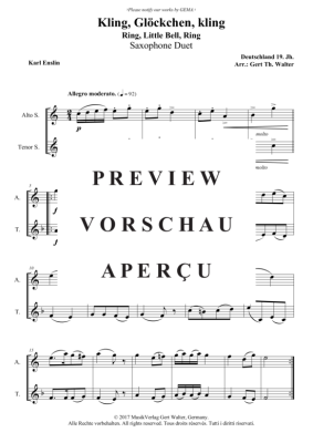 Kling, Glöckchen, kling! - Noten für Saxophon Duett Traditional