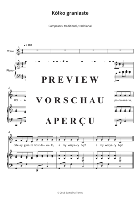Dieses Werk enthält die Originalnoten des polnischen Kinderlieds "Kó?ko graniaste", einfach arrangiert in C-Dur für Klavier und Gesang.
