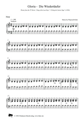König der letzten Tage - Gloria: Harfe - Noten für Aus dem Film "König der letzten Tage"