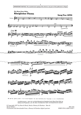 Königliches Thema - Noten für Violine Isang Yun