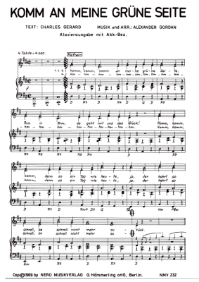 Komm an meine grüne Seite - Noten für Klavier und Gesang Renate u. Werner Leismann