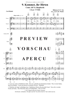 Kommet, ihr Hirten - Noten für Männerchor, Gitarre + Klavier Traditional