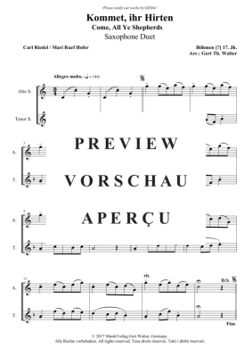 Kommet, ihr Hirten - Noten für Saxophon Duett für Alt- + Tenor Saxophon Traditional
