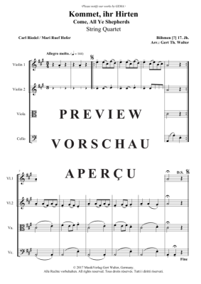 Kommet, ihr Hirten - Noten für Streicherquartett Traditional