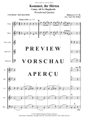 Kommet, ihr Hirten - Noten für Holzbläserquintett Traditional