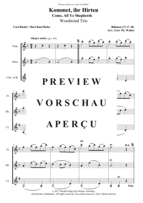 Kommet, ihr Hirten - Noten für Holzbläser Trio Traditional