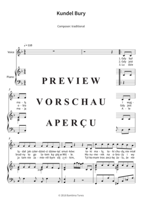 Dieses Werk enthält die Originalnoten des polnischen Kinderlieds "Kundel Bury", einfach arrangiert in F-Dur für Klavier und Gesang.