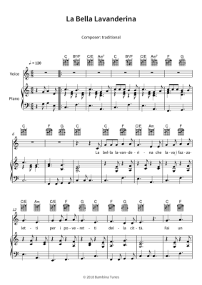 La Bella Lavanderina - Noten für Gesang + Klavier, Gitarre traditional