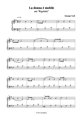 La donna e mobile - Noten für Klavier solo einfach Giuseppe Verdi (bearb. aus: Rigoletto)