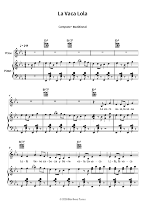 La Vaca Lola - Noten für Gesang + Klavier, Gitarre traditional