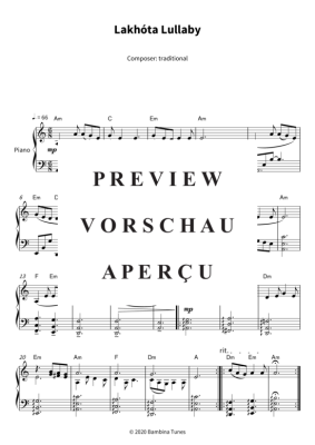 Dieses Notenbuch enthält die Noten des wunderschönen indianischen Wiegenliedes "Lakhóta Lullaby" für Klavier. Mittlerer Schwierigkeitsgrad in a-Moll.